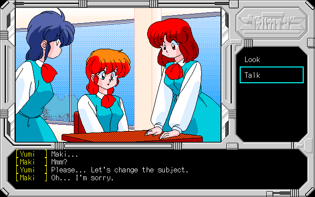 We used Kirinn's awesome SGS graphical toolset again for this one. However, Alpharobo had to write a new text routine because of the engine differences. As an added bonus, the game has been converted to HDI, the graphics and animations recompressed to save space, and all the CG display times fine-tuned so you actually have the time to read the text before it vanishes. The original release was too much tied to CPU speed and disk access time ; now you should be able to play it without issue regardless of your setup.